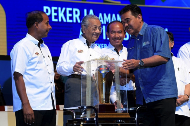Perdana Menteri Tun Dr Mahathir Mohamad menyampaikan Anugerah Perdana Menteri Tokoh Mahir kepada Pengarah PBA Holding Berhad Datuk Ir Jaseni Maidinsa