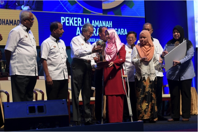 PUTRAJAYA, 1 Mei 2019 — Penerima Anugerah Tokoh Pekerja Negara kategori Orang Kurang Upaya (OKU) 2019, Azian Sofia Amin, tekad membuktikan golongan OKU juga boleh memberi sumbangan kepada negara sebagai pekerja yang produktif dan proaktif.